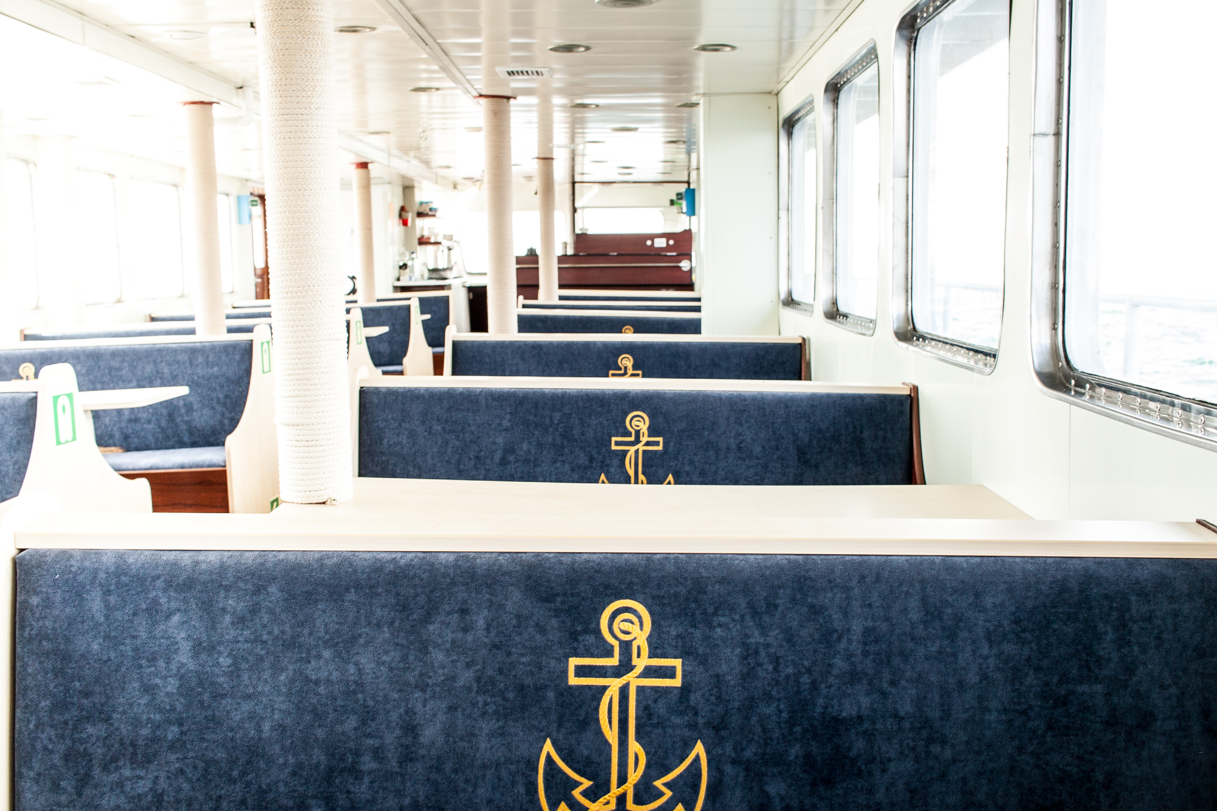 Das Schiff verfügt über 2 Außendecks vorne und achtern und über einen hellen Salon mit kleiner Bordbar im Mittelbereich.