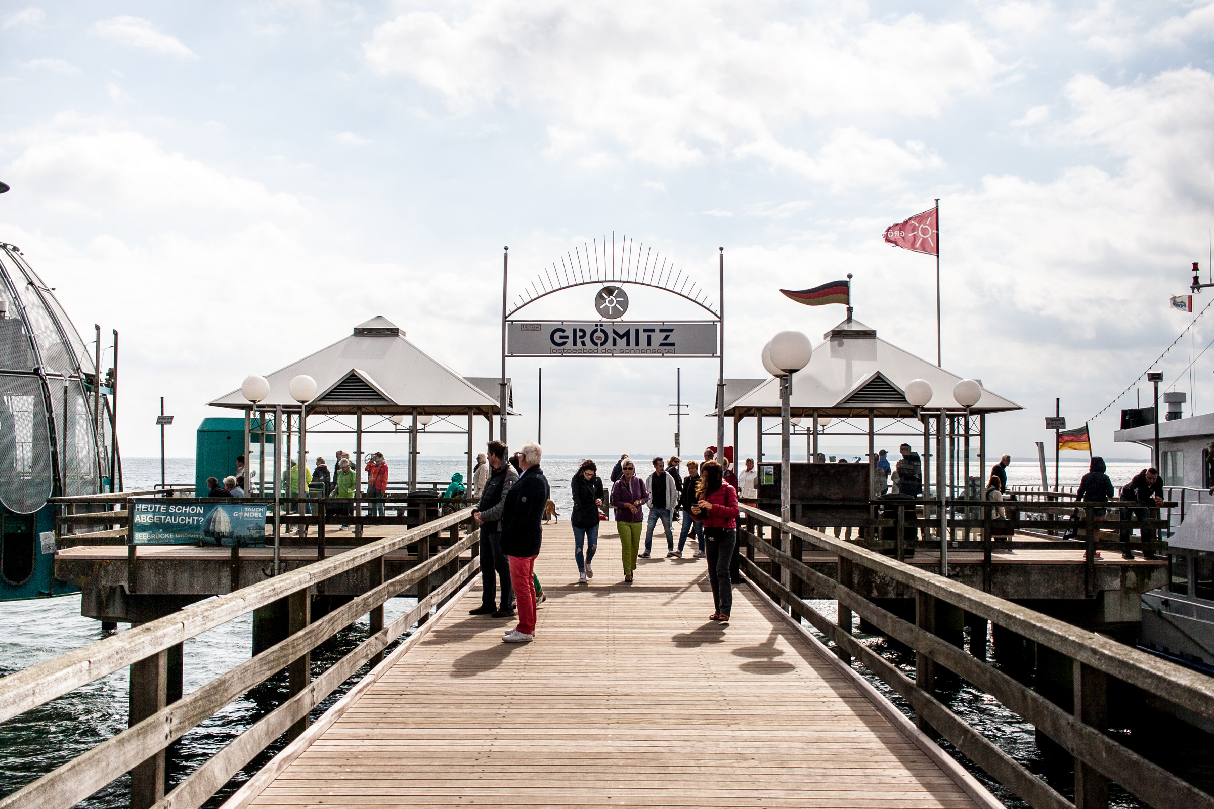 Land in Sicht – Grömitz! Vorbei an Pelzerhaken mit seinem Leuchtturm und der schönen Küste Ostholsteins mit Gut Brodau und Rettin bringen wir Sie in eines der größten und beliebtesten Seebäder Deutschlands.